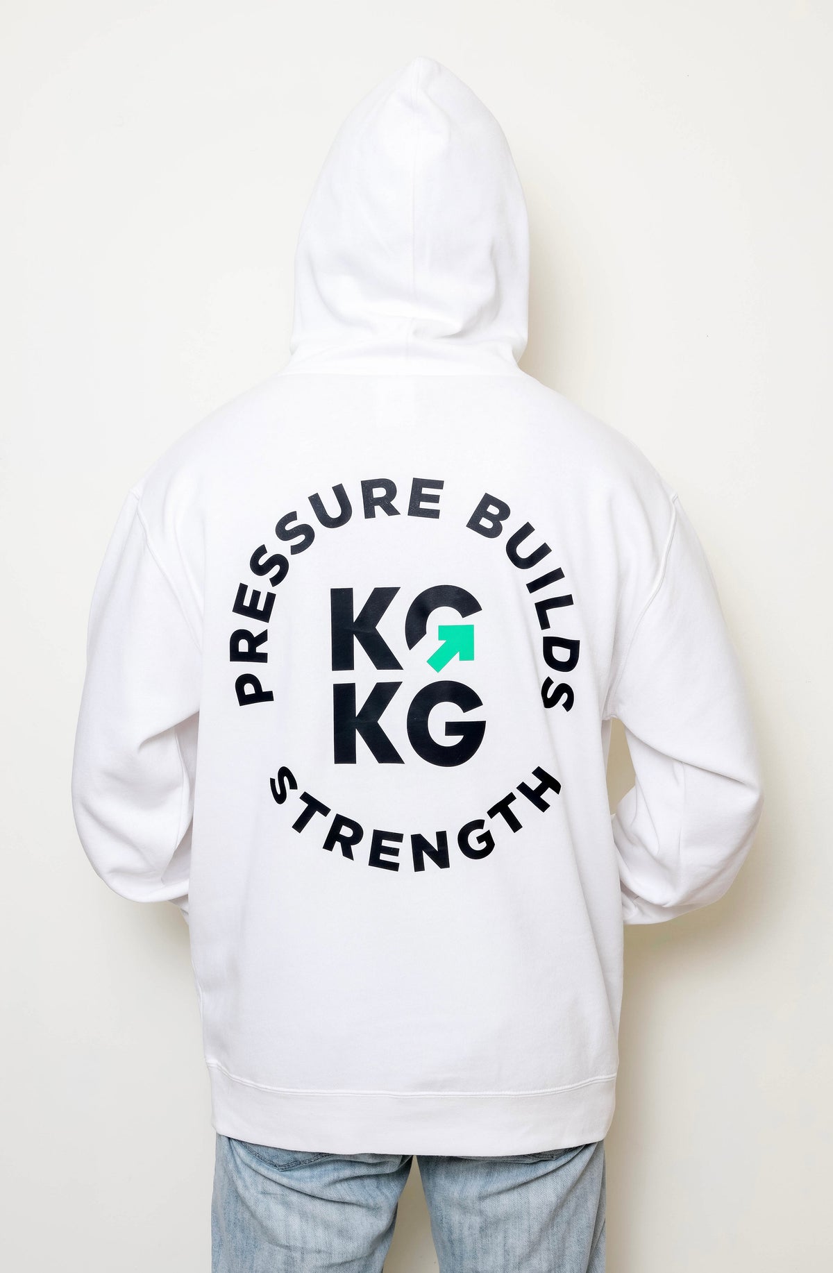 Featuring the clean KGKG leaf emblem on the left chest and the powerful PRESSURE BUILDS STRENGTH back graphic, this hoodie brings together mindset, message, and movement. It’s designed for the grinders — the ones who’ve been through it, pushed through it, and came out stronger.