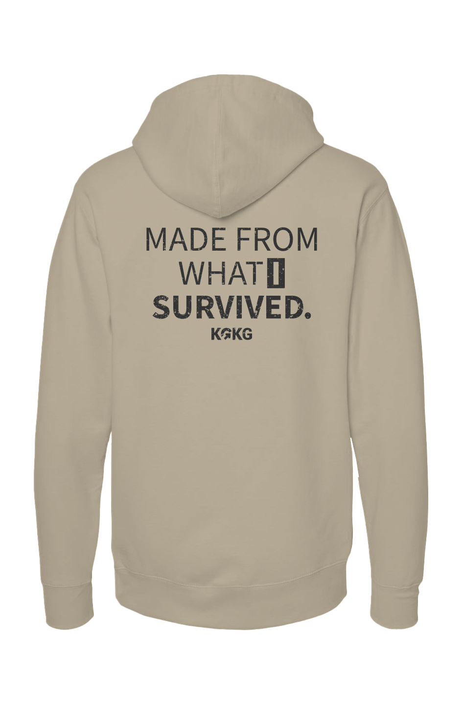 This hoodie represents everything you’ve made it through — the setbacks, the pressure, the quiet battles no one saw. With a clean KGKG mark on the front and the statement “Made From What I Survived.” on the back, this piece isn’t about attention. It’s about acknowledgment.